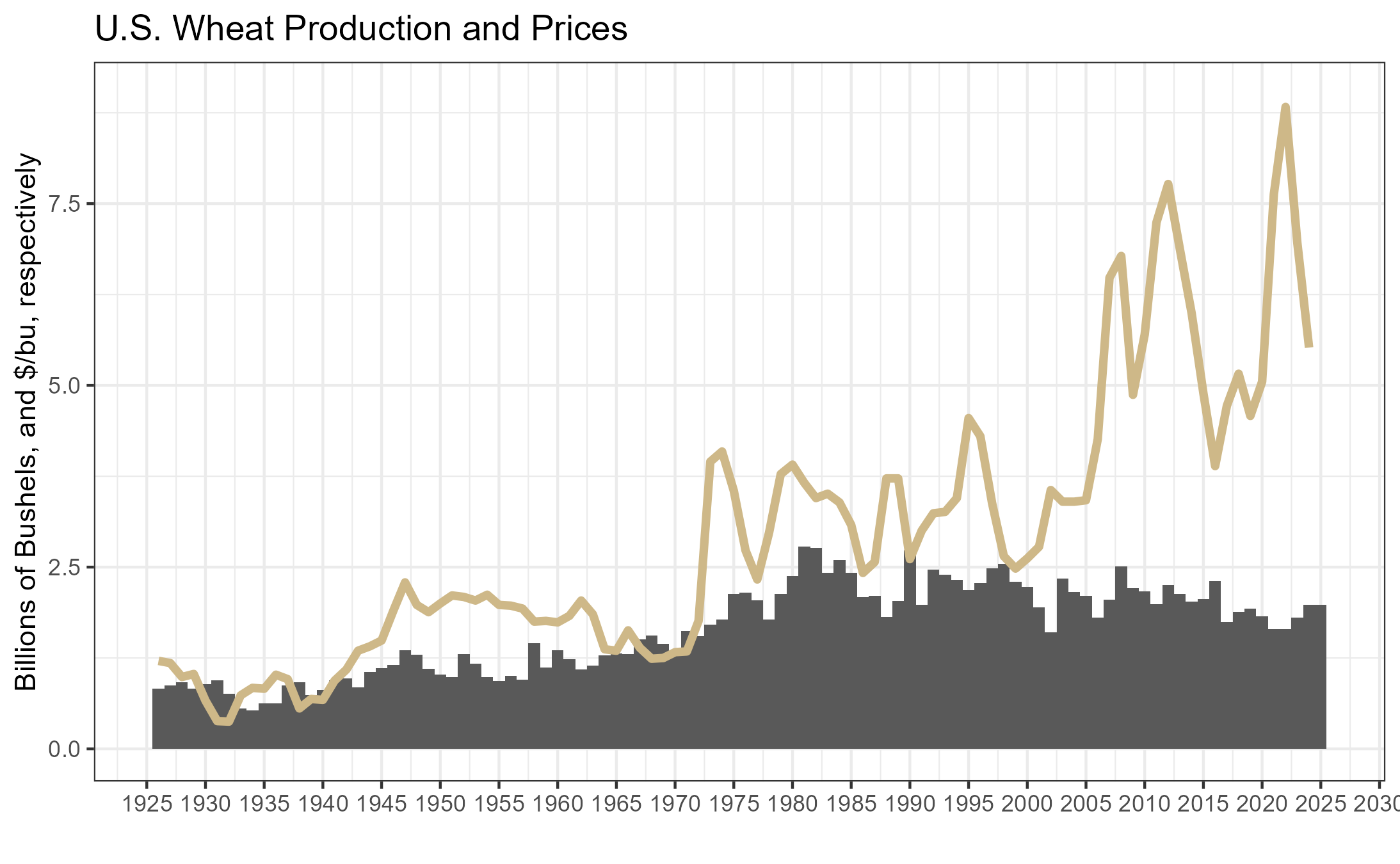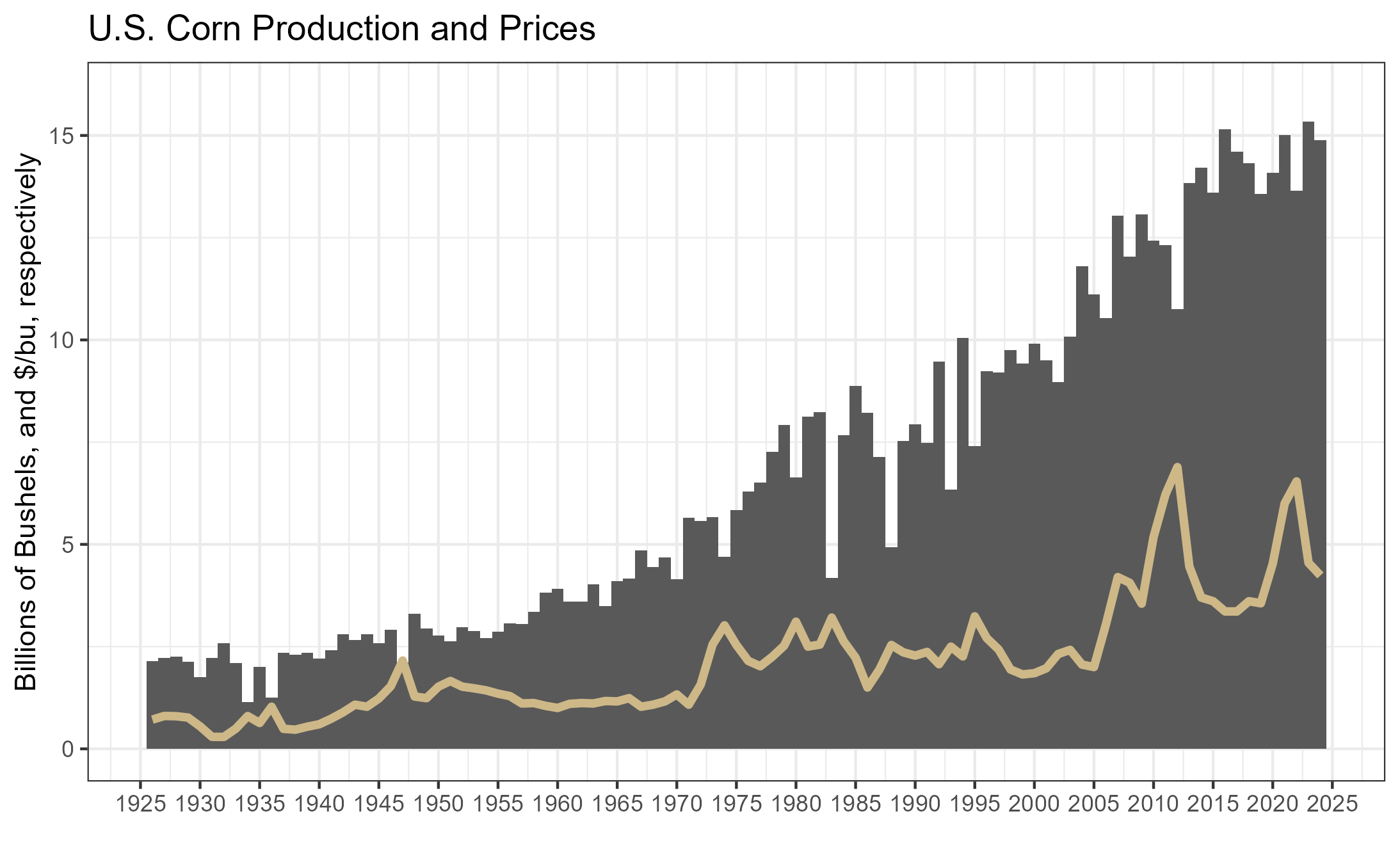 Corn prices can be quite volatile, with prices and production highly inversely related to one another.
